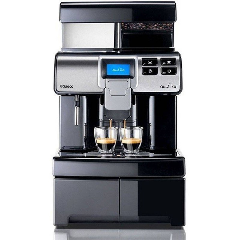 Aulika é a linha de máquinas de café para os mercados OCS e Ho.Re.Ca., que expressa plenamente a excelente qualidade da tecnologia Saeco. Todos os modelos incluem as melhores soluções profissionais, como a elevada capacidade dos depósitos de água e café e a certificação profissional; tudo isso garante o melhor rendimento e a maior eficácia, extremamente importante para os locais com elevado consumo diário. O amplo display gráfico, desenhado para gerir icones e textos em diferentes linguas, e o interface (equipado com botões de seleção direta grandes e fáceis de entender) tornam possivel usar e programar a máquina fácilmente; as operações de limpeza e manutênção, também são simples já que todas as partes que requerem cuidados regulares são extraíveis. Aulika Office dispensa café e água quente. Além disso incluí a base com capacidade extra para a recolha de borras. Aulika é a gama Saeco dirigida aos mais exigentes profissionais do café fora de casa.